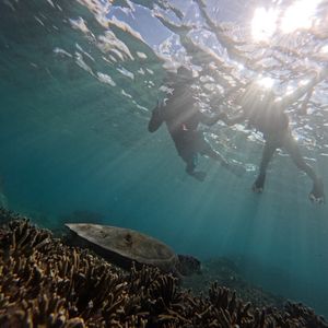 ウミガメとクマノミに会いに行きました。あまり泳ぐのが得意ではなくてもガイドさんの説明を受けながら、楽しむことができます。