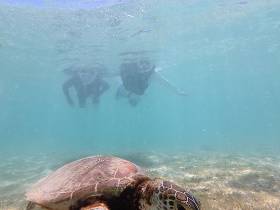 無事にウミガメに会う事ができ嬉しかったです。はなみさんときりさんも優しく、安全に案内して下さいました。