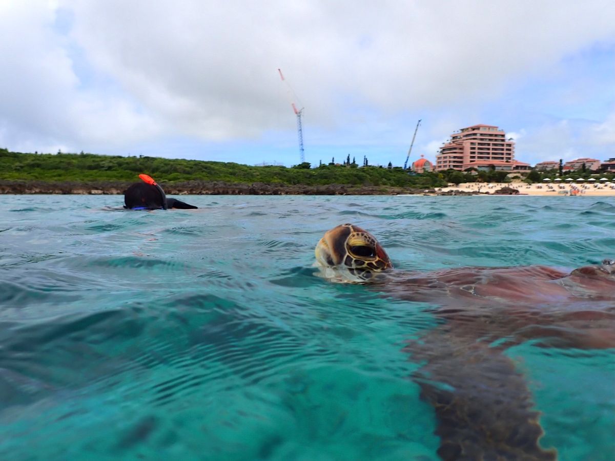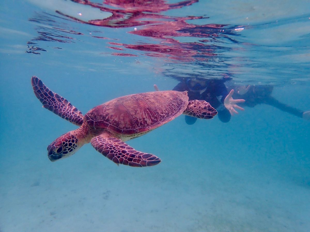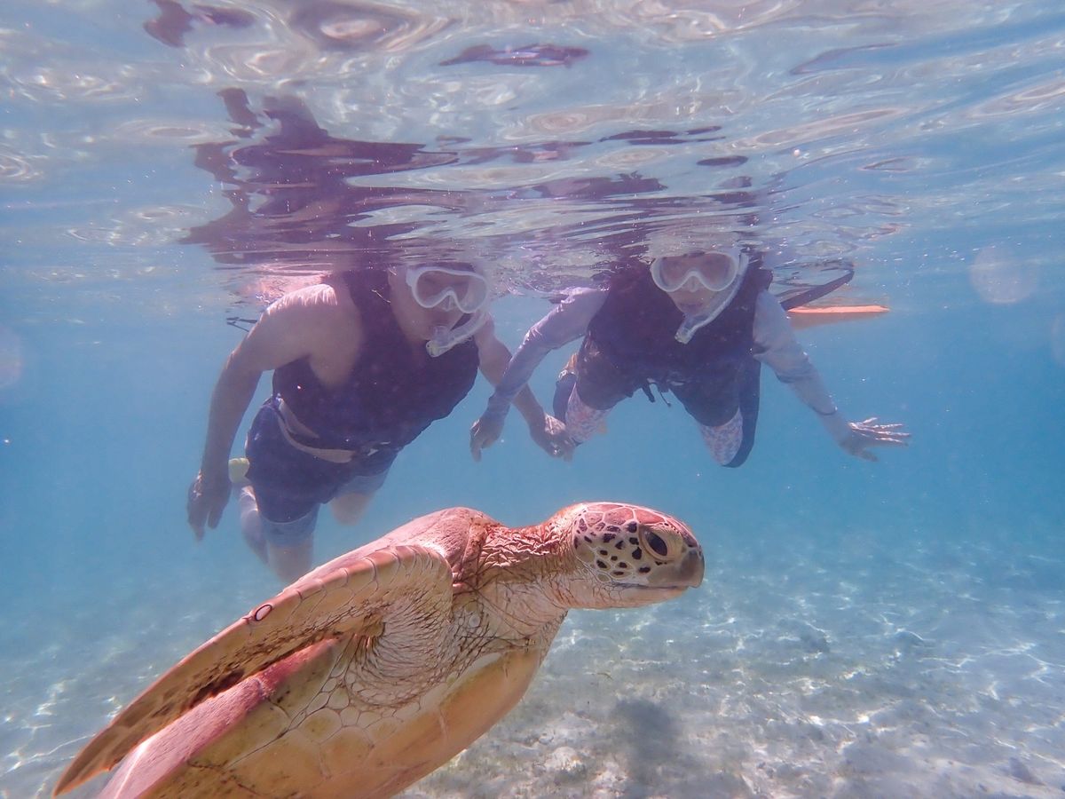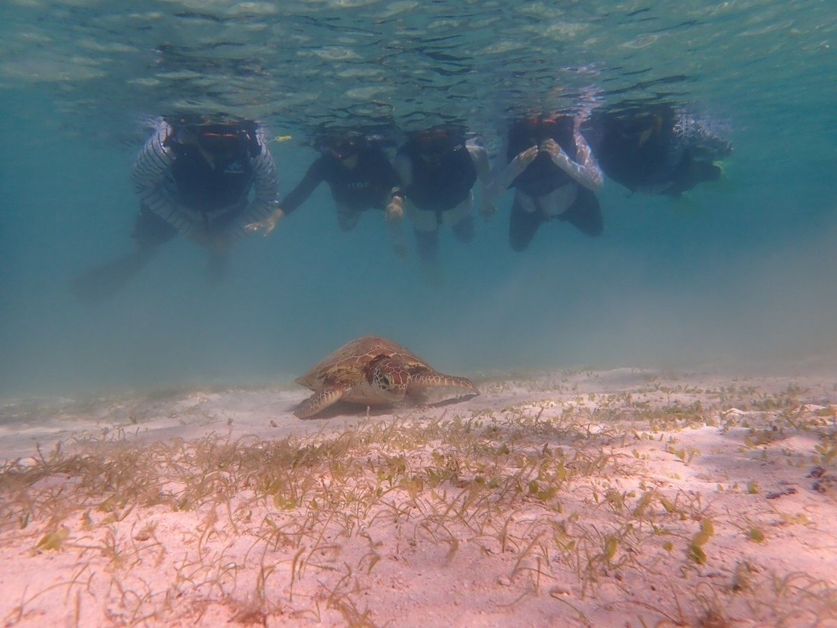 泳ぎ始めて10分程度でウミガメに遭遇することができました。少しですが一緒に泳ぐことができ、ウミガメが水中に生えている草を一生懸命食べている姿を間近でみれたのがとてもうれしかったです!その後1時間程度泳ぎましたがはじめてのシュノーケリングとゆうこともありかなり疲れました。ツアーに参加することでウミガメと出会えるスポットを探したりする時間が短縮できたので良かったです。個人で行っていればかなり疲弊していたと思います