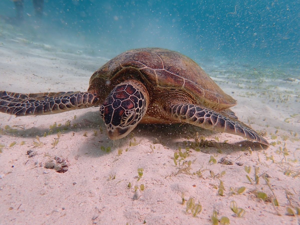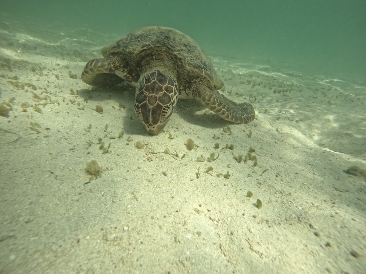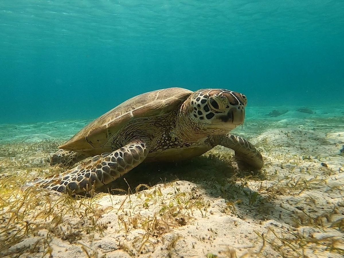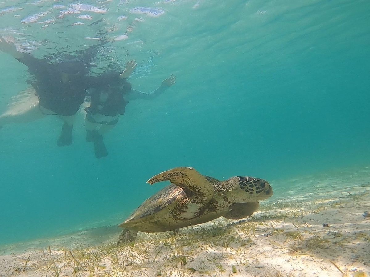 泳ぎ始めて10分程度でウミガメに遭遇することができました。少しですが一緒に泳ぐことができ、ウミガメが水中に生えている草を一生懸命食べている姿を間近でみれたのがとてもうれしかったです!その後1時間程度泳ぎましたがはじめてのシュノーケリングとゆうこともありかなり疲れました。ツアーに参加することでウミガメと出会えるスポットを探したりする時間が短縮できたので良かったです。個人で行っていればかなり疲弊していたと思います