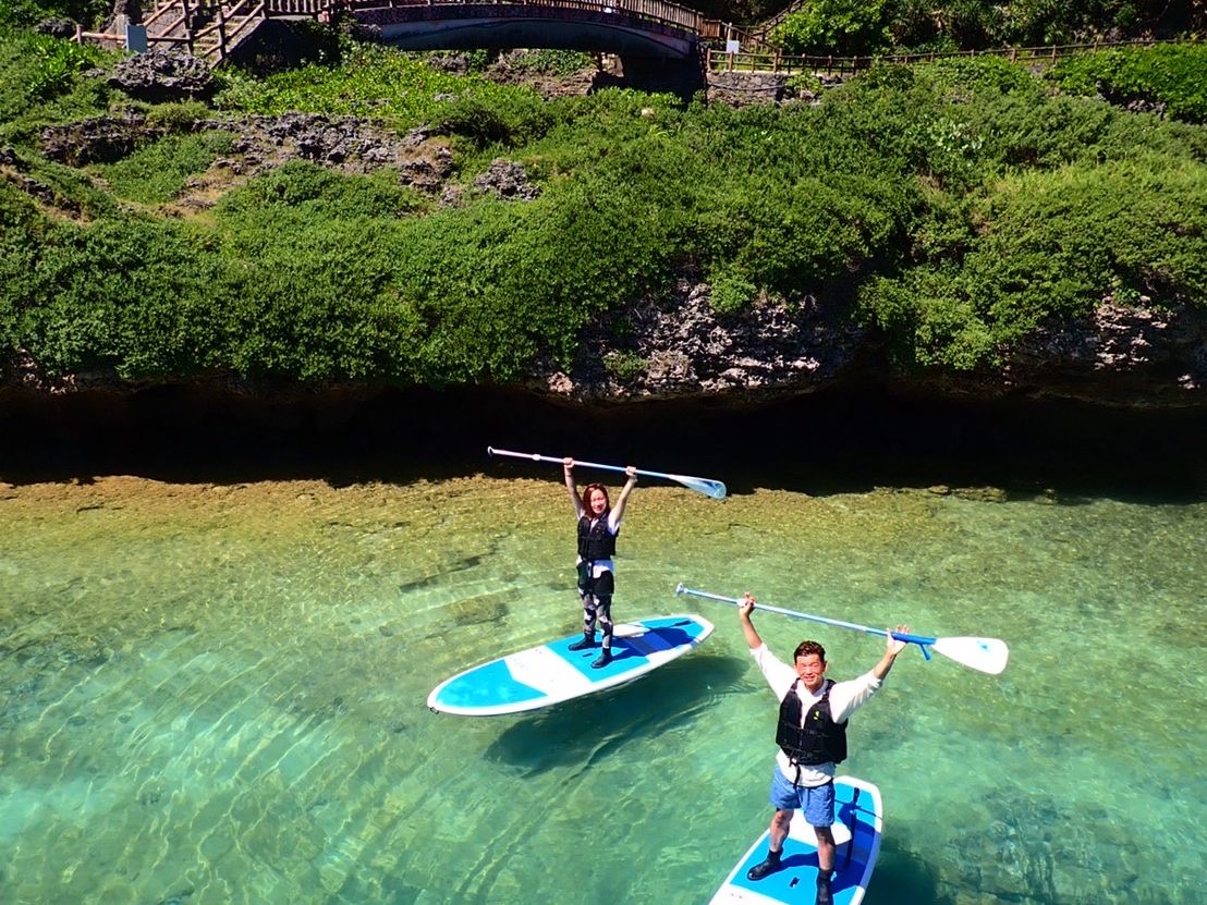 午前にシギラビーチでシュノーケル、ウミガメを探しに海に出ました!浅瀬すぐから魚たちがたくさん泳いでいてとっっっても綺麗で感動しました!少し泳いでいくと会いたかった海ガメがこちらに泳いで来てくれて、息継ぎのために海面から顔を出す瞬間まで見ることが出来ました!これはレアな体験のようですが、そんな貴重な瞬間を見ることができて参加して本当に良かったです!たくさんの写真を撮ってもらえて大満足です。午後からは初めてSUPをしましたが、丁寧に漕ぎ方を教えて頂けたので、楽しみながら参加することができました!