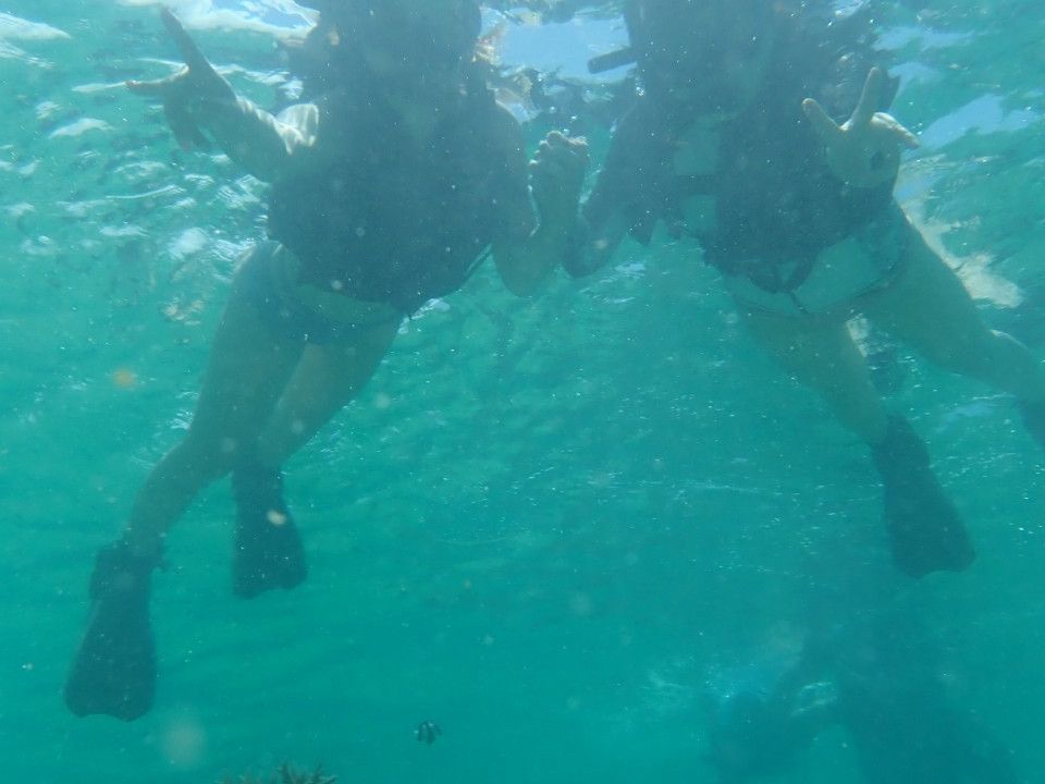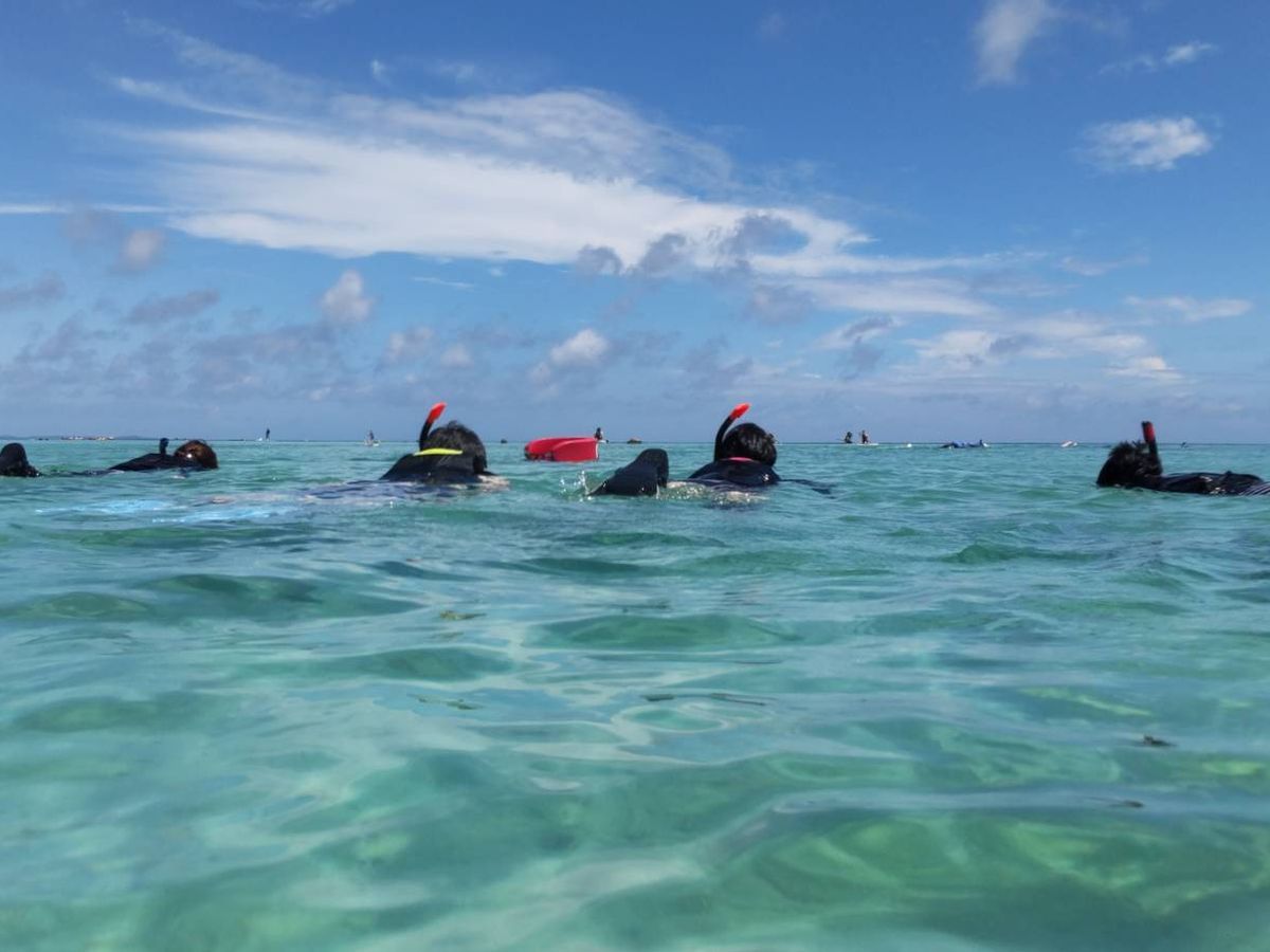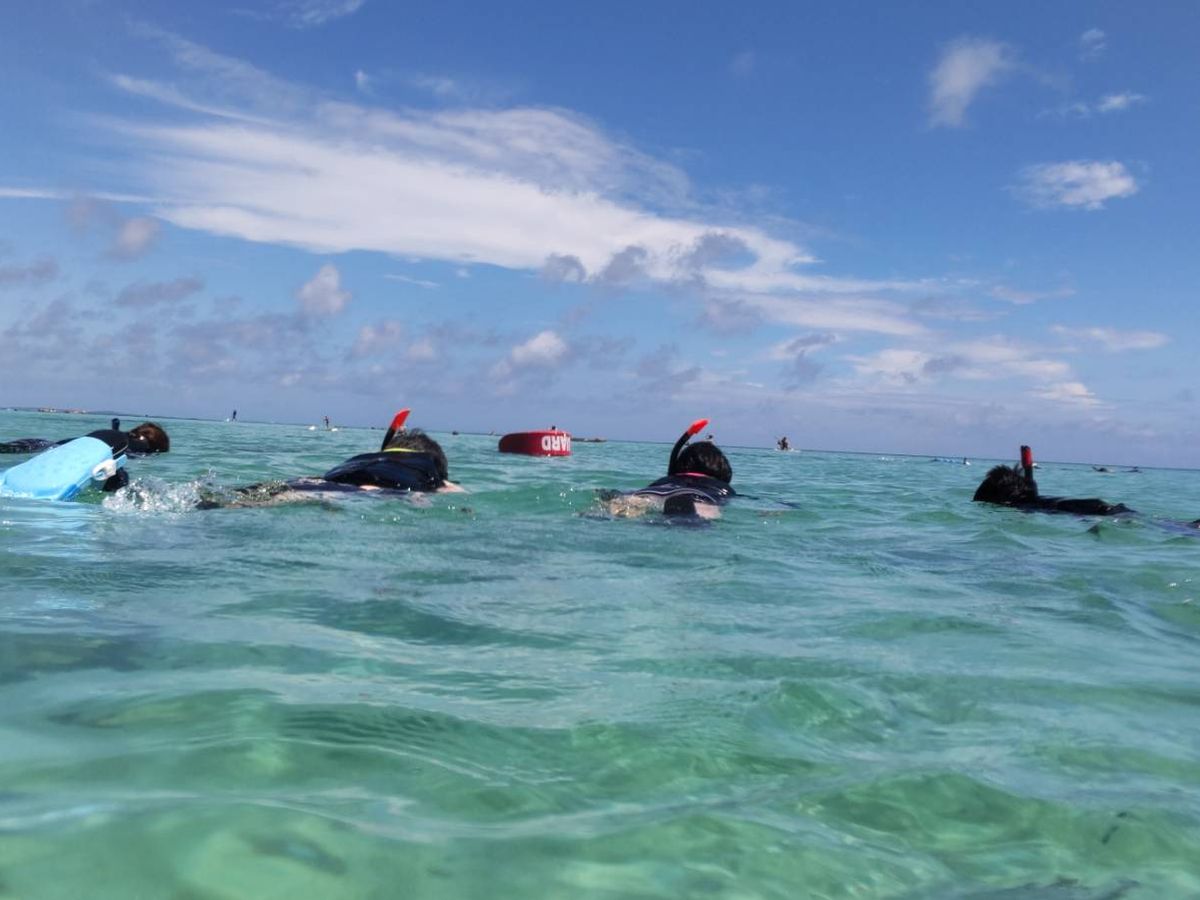 パニくると水を飲んでしまったり方向が分からなくなって不安になるので、私レベルの初心者が気をつけた方がよいことを書いておきます。 ①シュノーケリングのゴーグルの曇り取りの時に海水をよく切らなかったせいで、最初少しだけ目に水が入ってしまったので、水はよく払っておく。②大きく笑うとゴーグルに隙間ができて鼻に水が入るので、ややキツめにしておく。③頑張って泳ぎすぎて息を切らして口から水を吸わないようにする。④気をつけの姿勢で顔を水につけて足だけバタバタしたら、早めに真っ直ぐ進めました。⑤夢中になってずっと顔を水につけていると音が聞こえなくなりやすいので、時たま顔を上げてガイドさんの声を聞き位置を確認する。