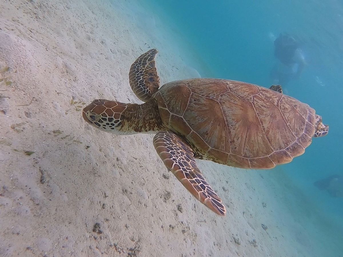 (写真は自力で撮ったウミガメです。ガイドさんがもっといい写真を撮って共有してくれます。)