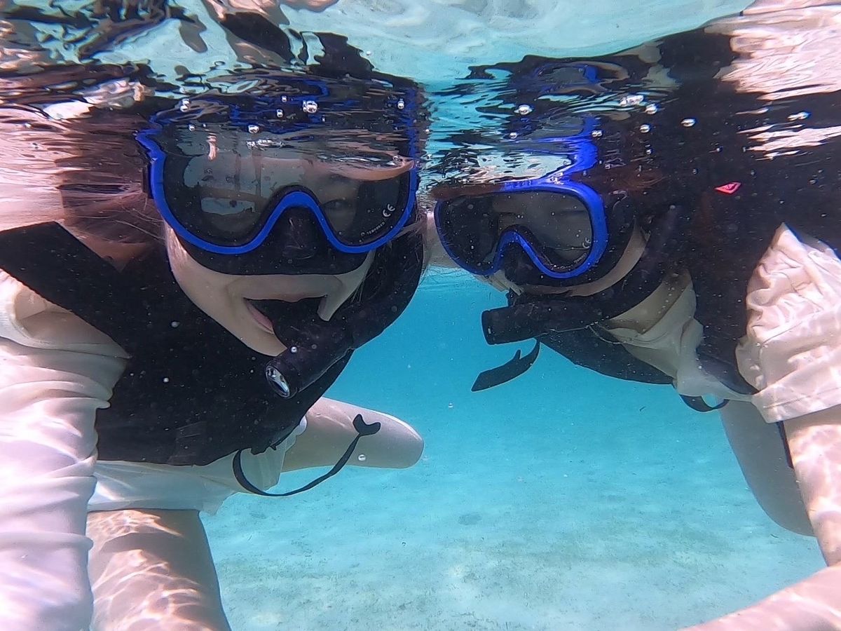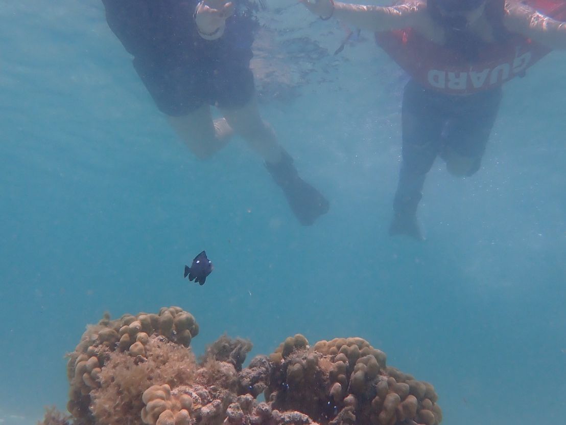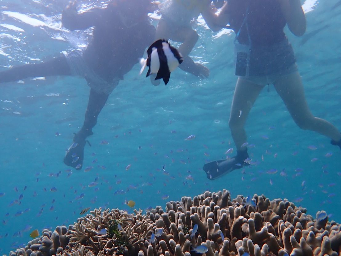 午前はシュノーケリングで、ウミガメと魚に遭遇できました!こんなに近くで見られるんだ…と感動しました。とてもきれいでした。私自身泳ぎの経験がほぼなく、鼻をつまみ目を閉じないと顔を水につけられないレベルでしたが、たくさん水中を見ることができて良かったです。