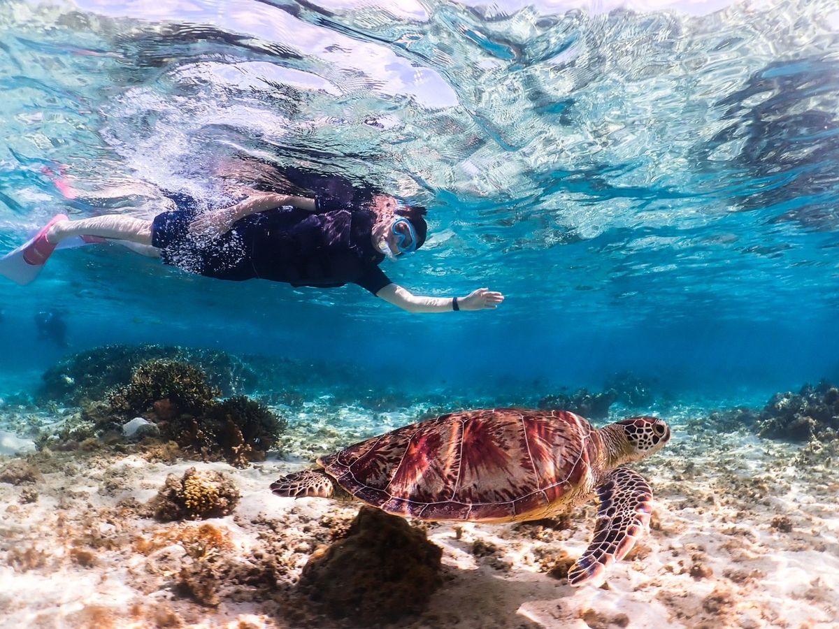 シュノーケルでは、入った瞬間からたくさんの魚たちを見ることが出来て、更に幸運にもウミガメに出会うことができて、本当にいい思い出になりました。