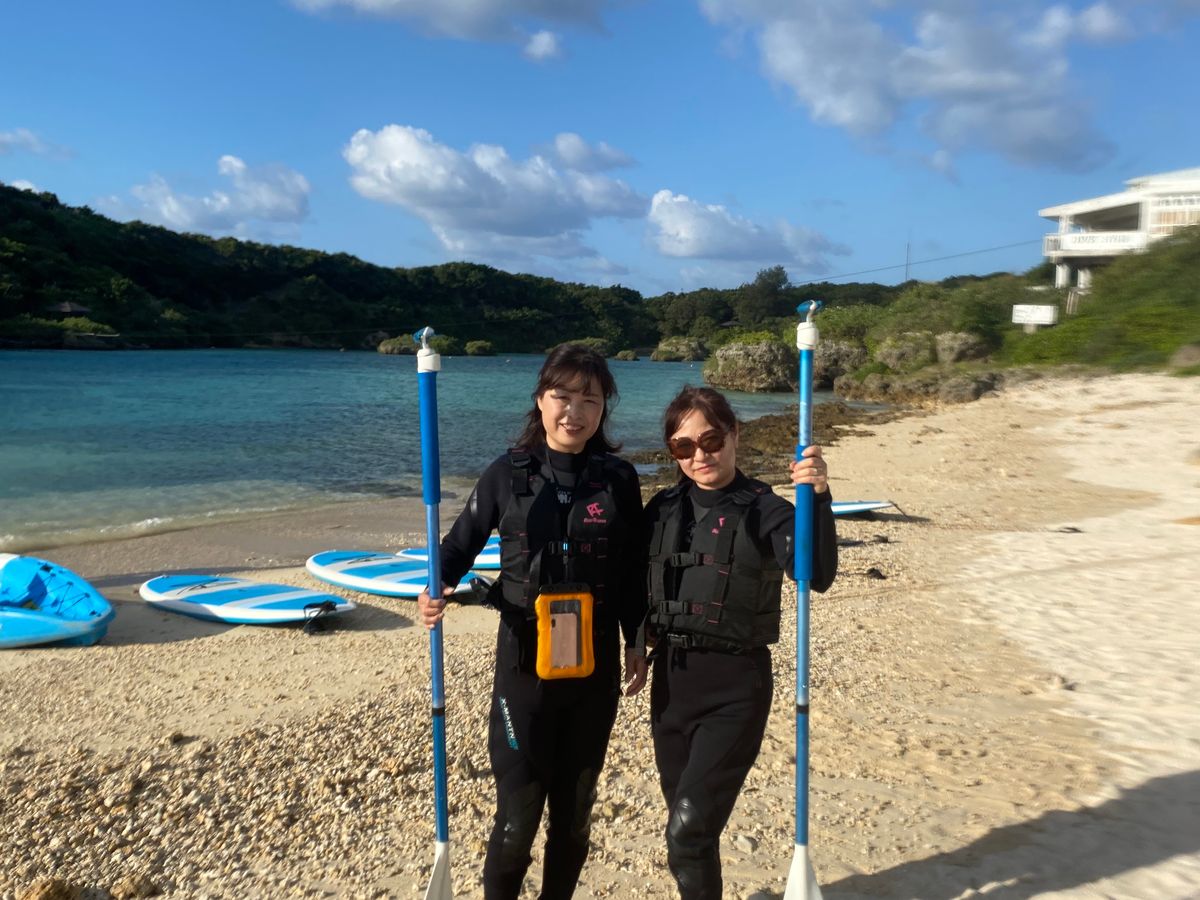 宮古島の海でシュノーケリングとSUPをやってみたくて、よくばってこのツアーに参加しました。シュノーケリングでまず海に慣れて、運よくウミガメも間近で見ることができ、息継ぎがとても可愛かったです。少し休憩後初めてのSUPでドキドキでしたが、スタッフさんがやさしくわかりやすく教えてくださり、無事に立つこともできました。結構深いところまで行って、風を感じながらのSUPはサイコーでした。今度はもっと長時間のコースにチャレンジしたいです!