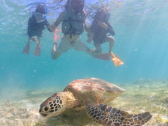 こめっちさんガイドの元、シュノーケルの使い方などレクチャーしていただき、開始して本当にすぐにウミガメに出会えました!