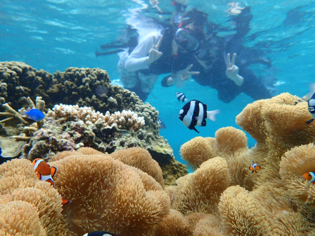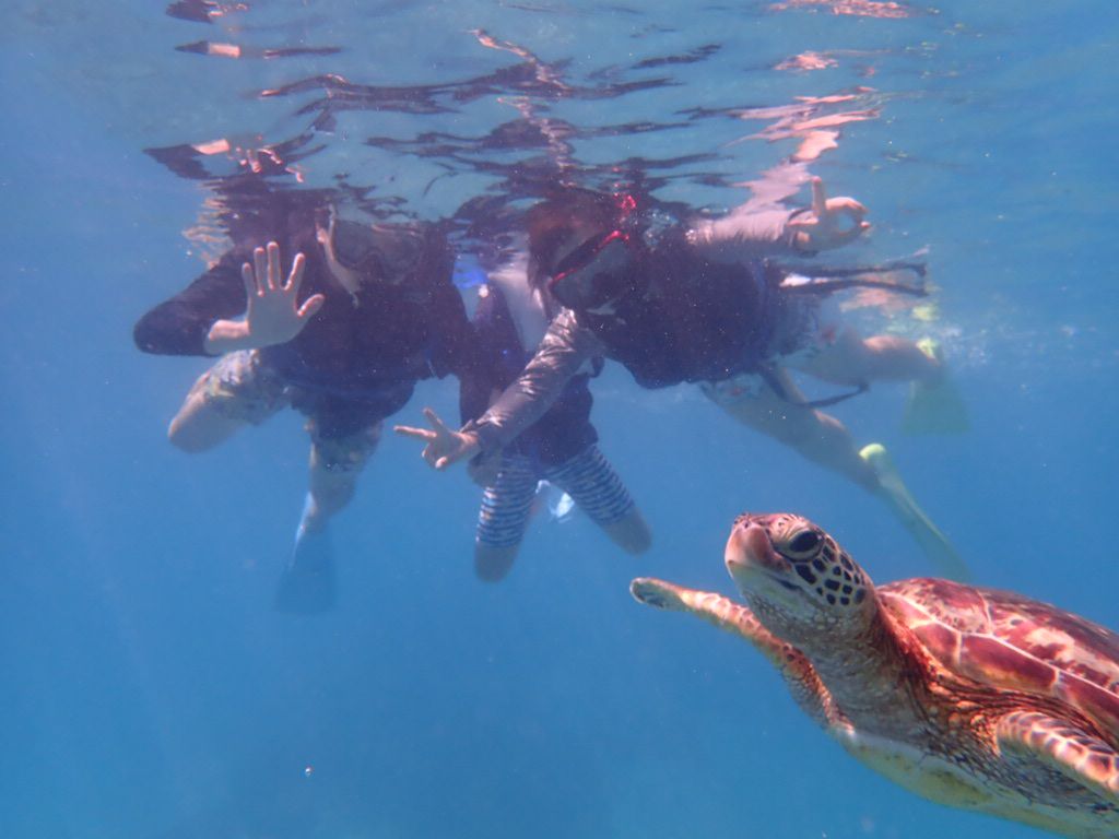 お目当てのウミガメも、カクレクマノミ等の熱帯魚もたくさん見れて、海水の透明度も高くとても楽しいシュノーケリングでした。