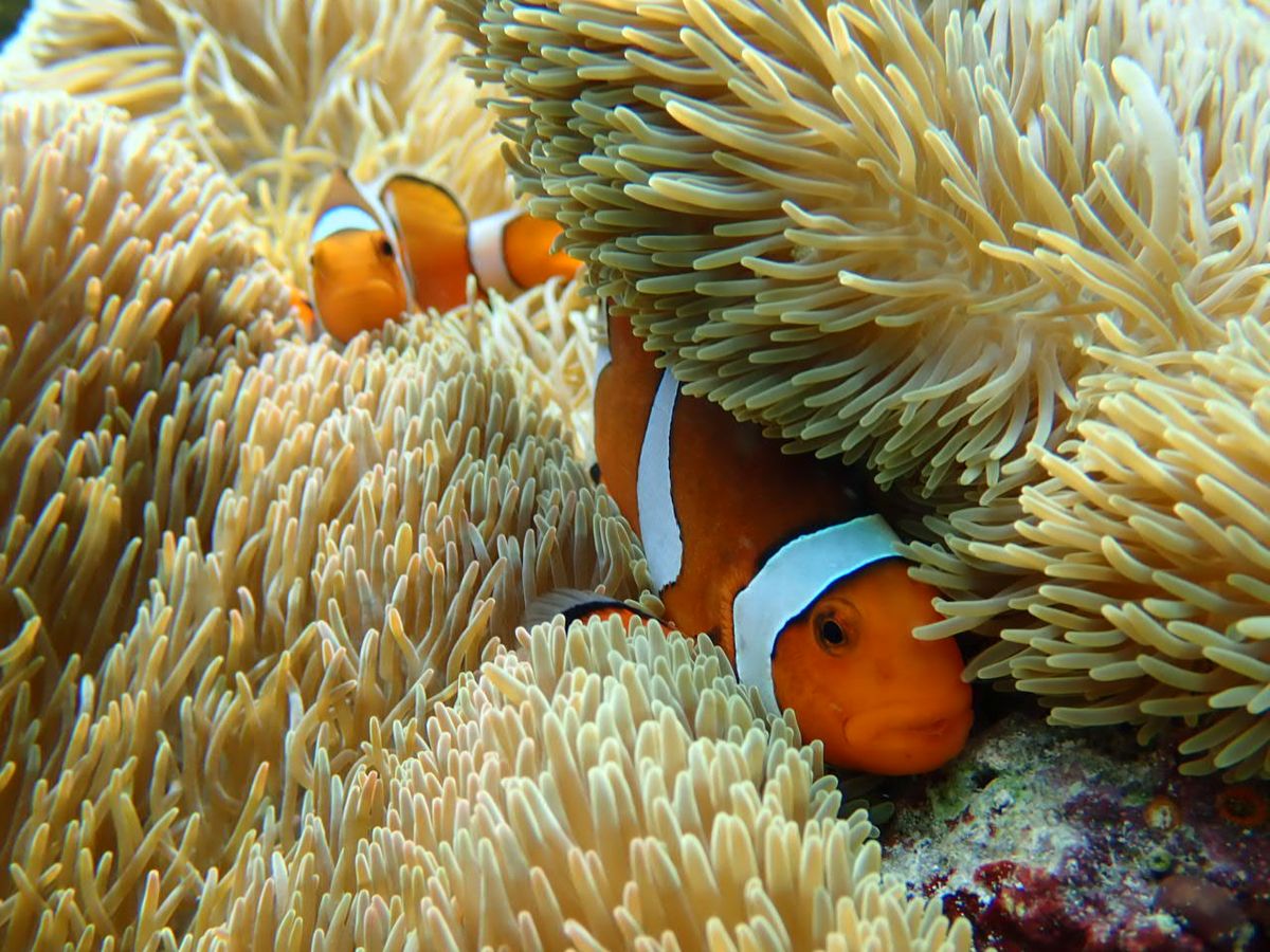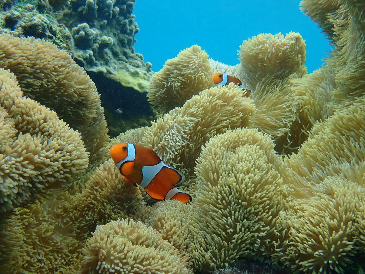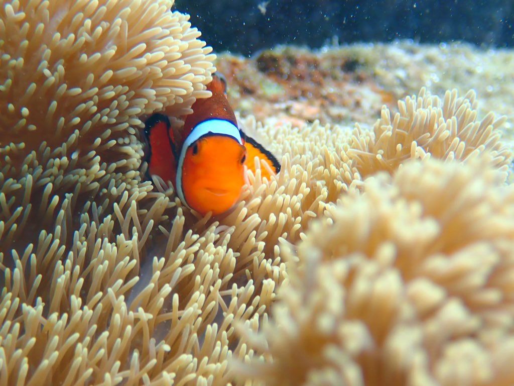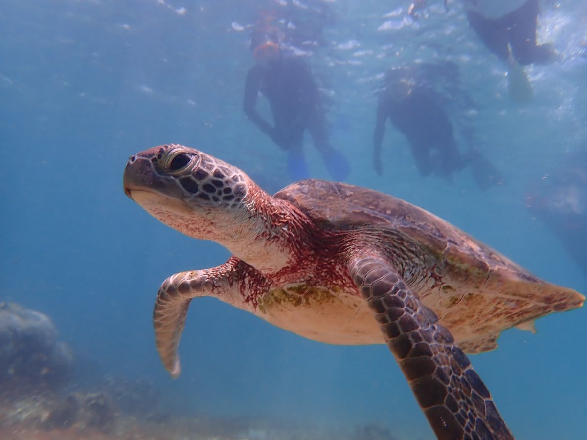 次のシュノーケリングでは、ゆっくり泳ぐウミガメと写真を撮れましたし、クマノミの紹介やサンゴ礁付近にも行けたので良かったです!