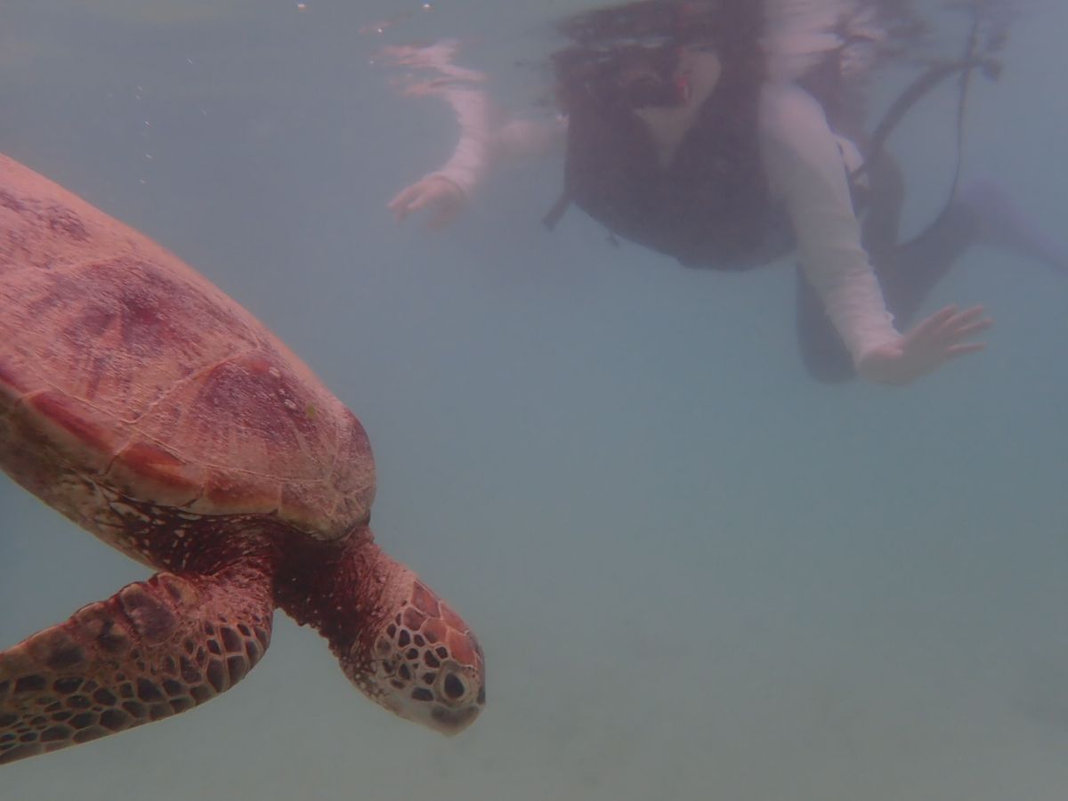 キョウコさんがちゃんとウミガメを見つけてくれて、一緒に写真撮影できました!キョウコさんのおかげです!