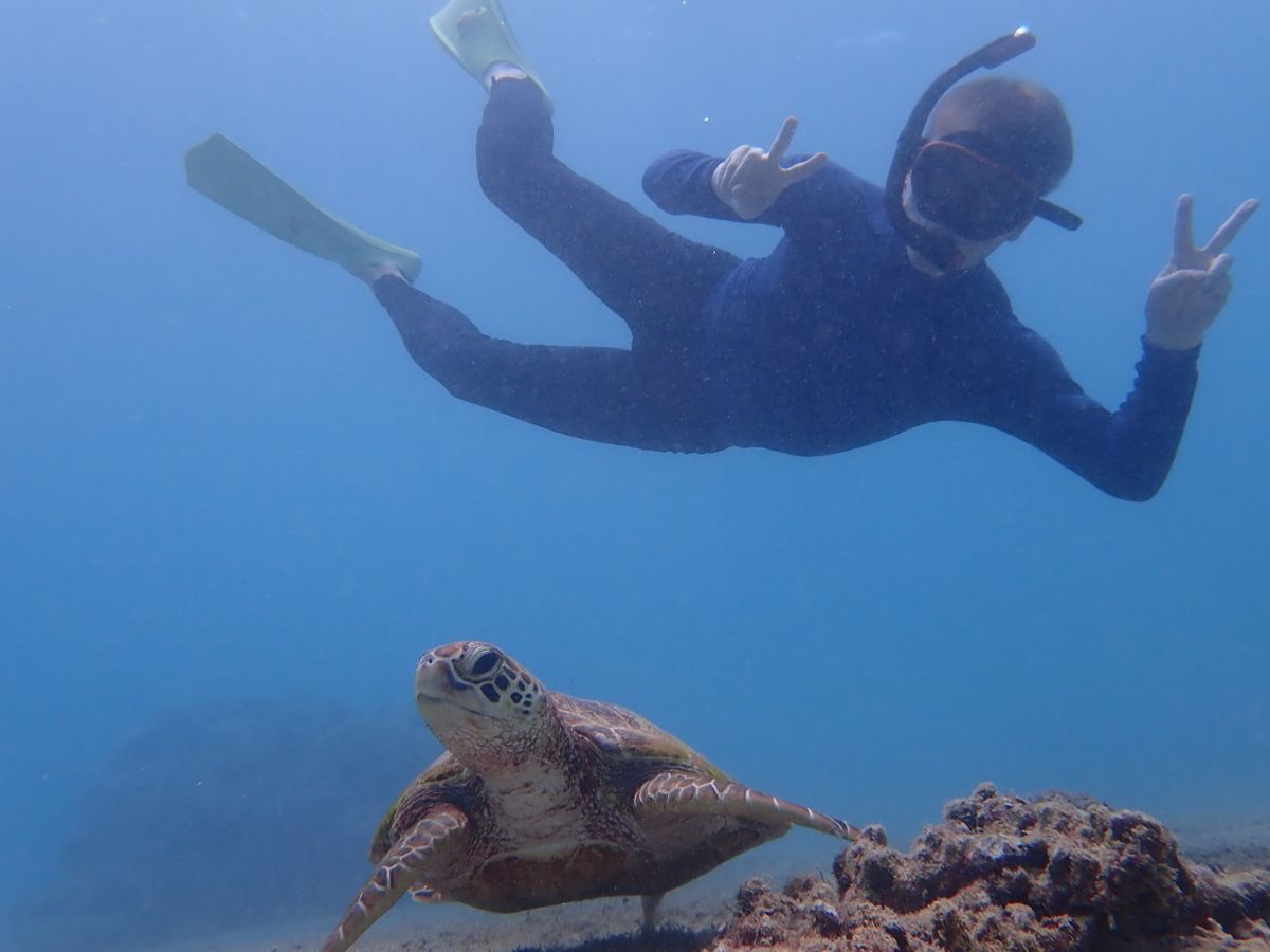 ウミガメも見つけることができ、一緒に泳ぐことができたのでよかったです✌️