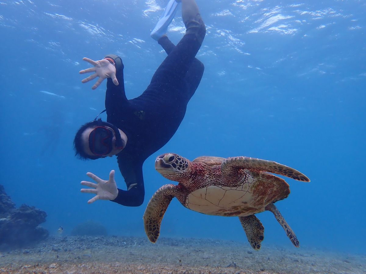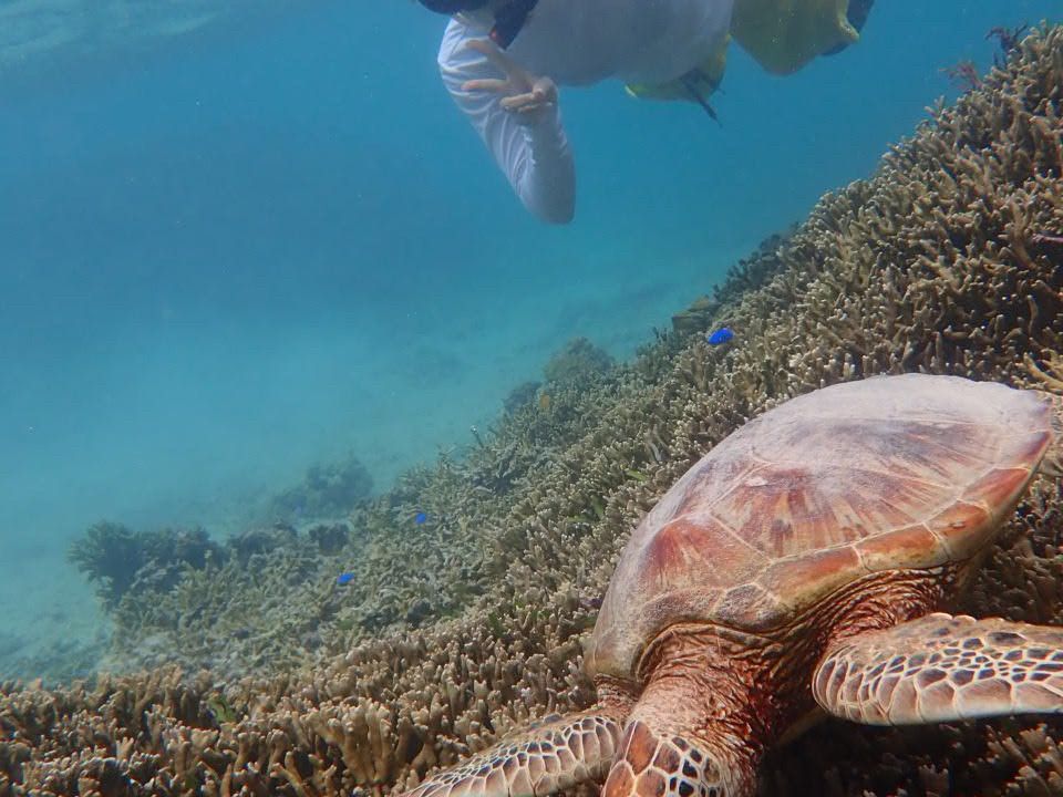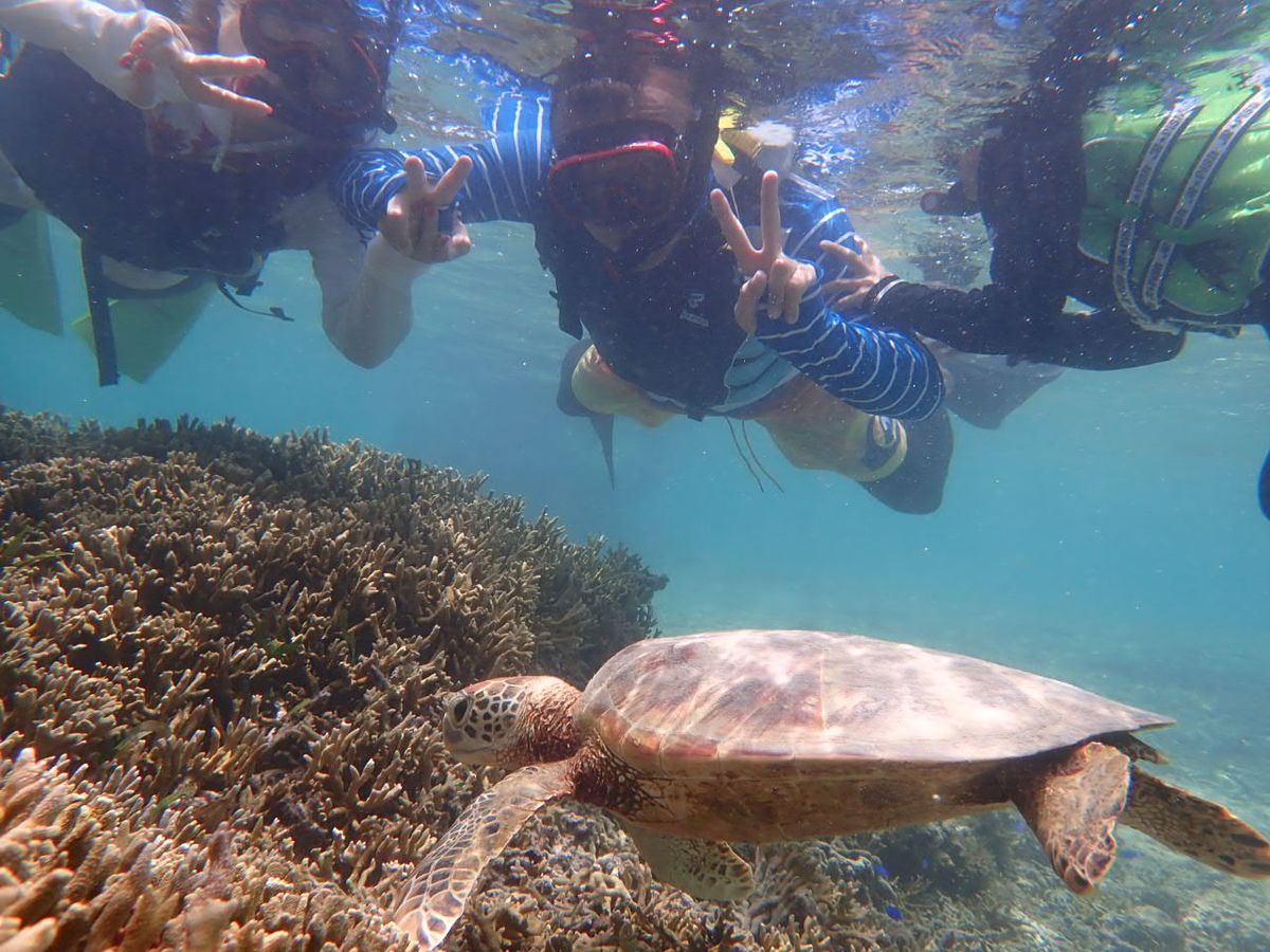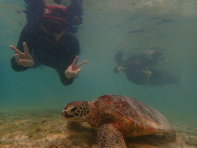 ウミガメ見れたらラッキーくらいに思ってましたが、あんなに近くでしかも一緒に泳げて最高でした。