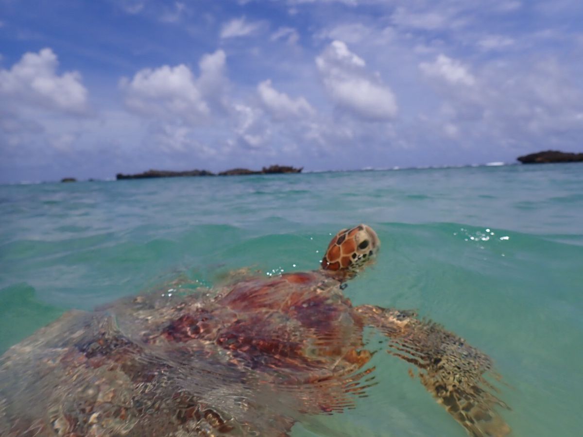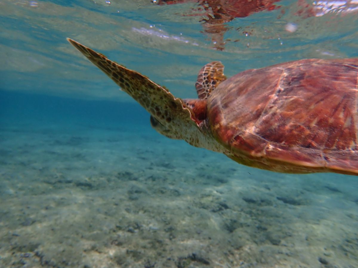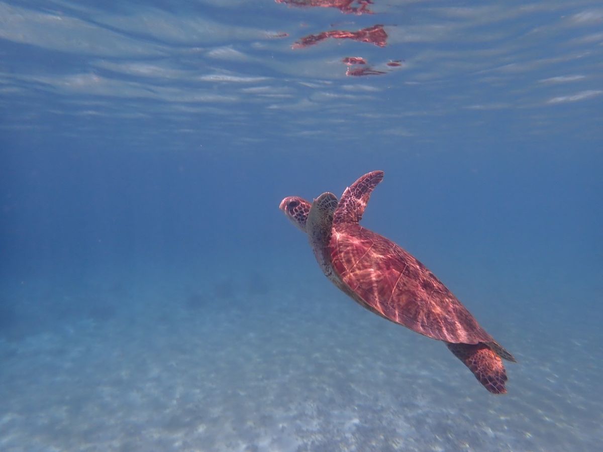 最初はなかなか出会えませんでしたが、一匹のウミガメに出会えました。