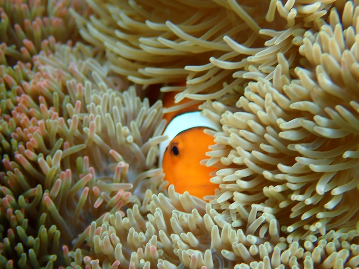 まず、ウミガメさん居ました。しばらく見て上がってきたので一緒に泳げました。次はクマノミ、次にサンゴとお魚。カメさんを見たい人も、サンゴを見たい人もどちらも行けます。泳ぎに自信がない人も、つかまって泳げるので大丈夫です。私たちのような熟年者も大丈夫です。泳力のある方も楽しめます。