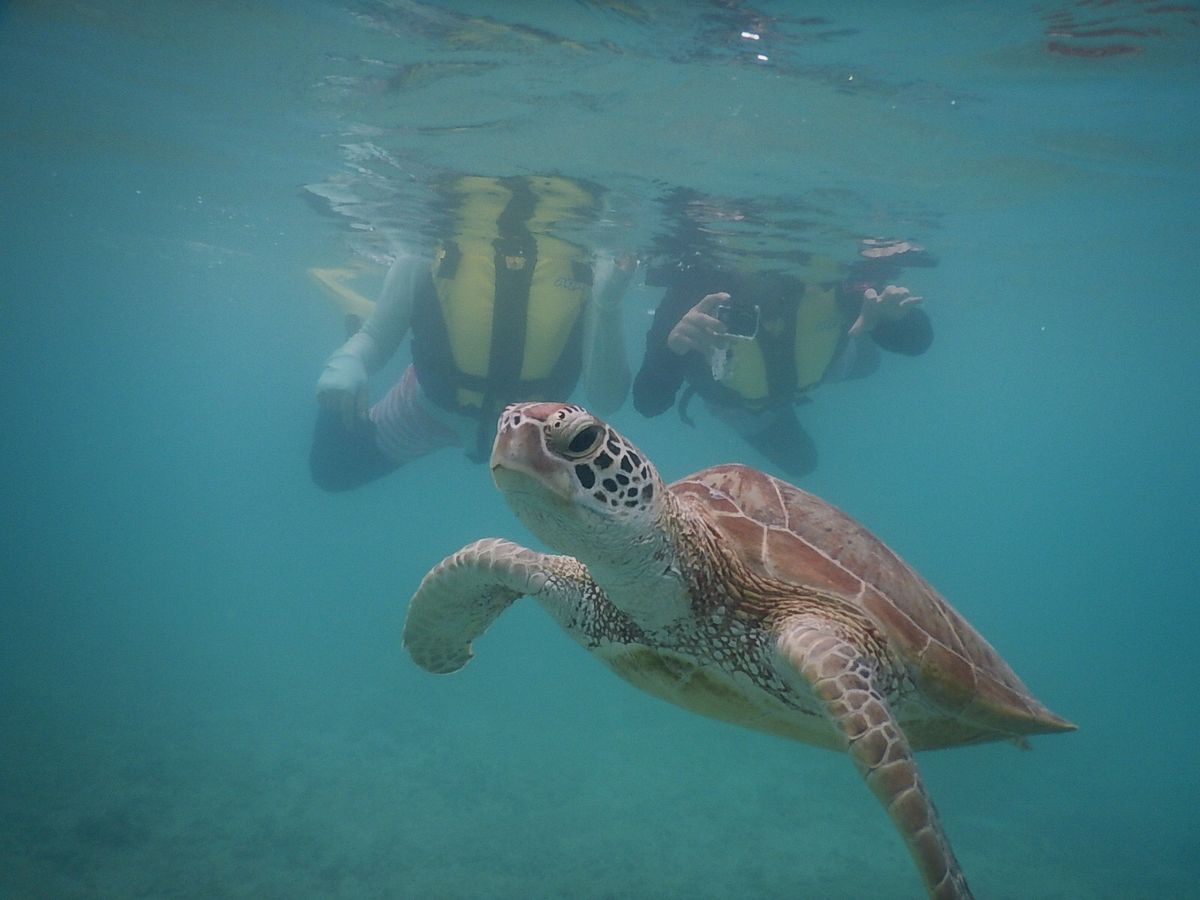 ウミガメは確実に見れますし、シュノーケリングやライフジャケット着てても泳ぐのが不安な人にはガイドさんが浮き輪に捕まらせてくれるので安心ですよ!