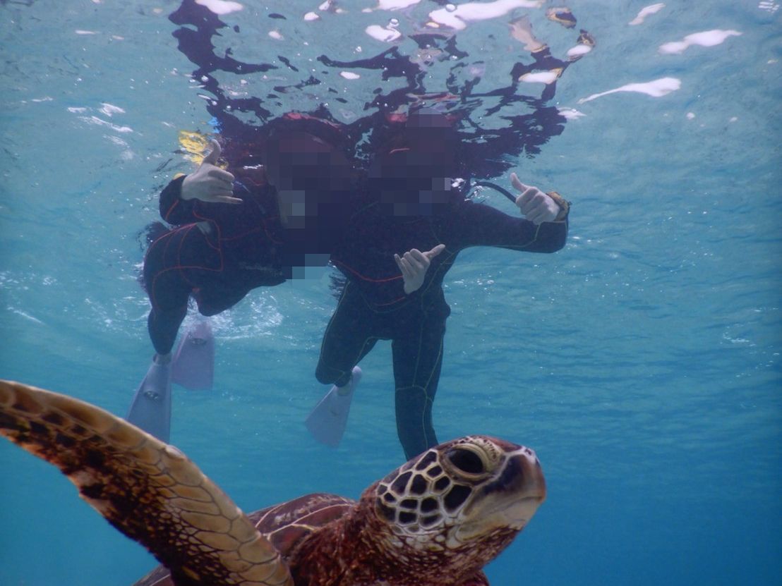 みおみお様 こんなに至近距離で~!!という位、人懐っこい子に遭遇できて、じっくりウミガメちゃんを見れたことだと思います^^