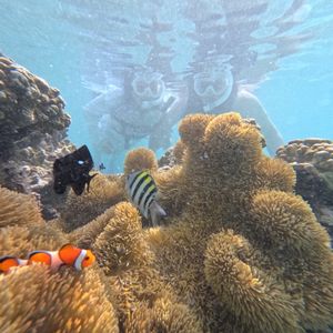 お天気も良く、水も透き通っていて本当にキレイでした!ウミガメは息継ぎのタイミングで水面に来てくれるので、そこを狙って写真を撮ってもらいました!ウミガメをこんなに近くで見れるなんて思ってなかったので、とっても感動しました◎とってもかわいいかったです◎その後すぐには、クマノミなどのスポットまで泳いで移動しました。ここでもスタッフのお兄さんが沢山写真を撮ってくれました!撮影いただいた写真撮影や動画は、ツアー終了後すぐにデータでいただきました!とても良く撮れていて一生の思い出になりました!ありがとうございました!!