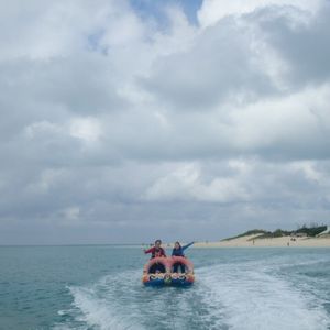 マリンスポーツは5種類の乗り物があり、乗りたいものを乗ることができますが、ジェットが2台なので状況により待ち時間があります。乗り物はスタッフさんにリクエストすれば、スピードアップもしてくれるのでスリルをあじわうことができ楽しかったです!マリンスポーツ中に、顔を出した海ガメにもたまたま会え感動しました。
