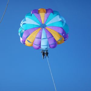 どこまでも続く宮古島の美しい海岸線と真っ青な空。海と空、両方の美しさを満喫できるパラセーリングを楽しんでみませんか?「与那覇前浜ビーチ」をはじめとする宮古島の真っ白な砂浜と、鮮やかな海の青とのコントラストはまさに絶景です。 ここでは、口コミでも人気が高くお手頃な料金でパラセーリングを体験できるアクティビティをご紹介。 保護者同伴であれば7歳以上の子供から参加できるので、家族の思い出作りにもぴったり。また多少の雨であれば問題なくアクティビティを楽しめます。シュノーケリングやダイビングに挑戦するのは難しいという方も、日本屈指の透明度を誇る宮古島の海ではパラセーリングの上からもウミガメが見れちゃいます。海上約100m以上の高さからエメラルドグリーンの海を存分に眺めましょう。絶景の空中散歩を満喫できる、おすすめパラセーリングアクティビティの予約はこちらから!