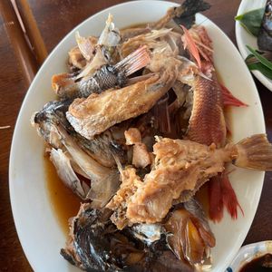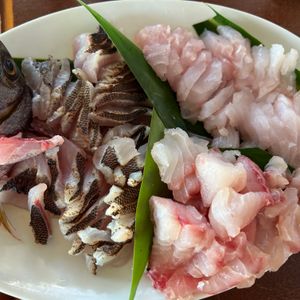 夜は船長の自宅横の食堂で釣った魚を刺身、煮魚、素揚げにしてもらい食べる事がで来ました