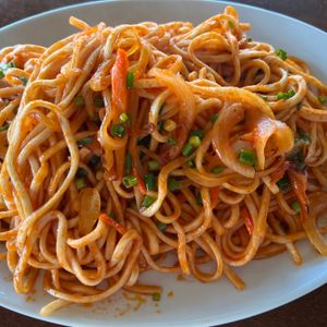 その後、お料理もしてくれて、釣ったお魚のお刺身、唐揚げ、煮付け、と、可愛い奥さまお手製の宮古焼きそば!