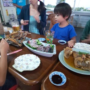 釣った後は船長のお店で唐揚げ、刺身、煮付けにして頂き、とても美味しく頂けました。