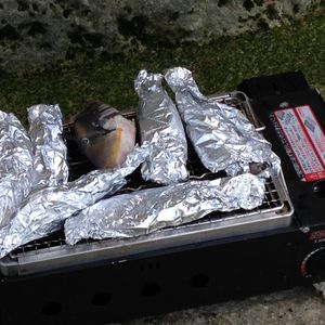 最後、釣れた魚はすーさんがさばいてホイル焼きを作って食べさせてくれました。こんなにたくさんの魚をさばいたのは初めてだとおっしゃっていました。一人二匹もあり十分堪能できました。日によってはまったく釣れなかったり、一匹を四人で分けて食べたり・・・自然相手なのでこればっかりは運ですね。