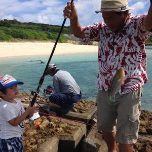 綺麗な海を見ながら釣りが楽しめます。小さな子供も手取り足取り教えてくれる優しい方で良かったです。またなんとか釣らせてあげようとしてくれ、結局5、6匹は釣れました。釣れた魚はその場で食べさせてもらえました。飽きたら砂遊び、ヤドカリ遊びも楽しめます。グッド!