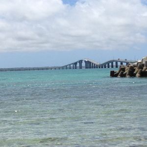 伊良部島の港の海は、沖縄本島の港の海とは比べられないほど透明度が高く、護岸近くの魚がはっきり見え、魚がえさに食い付くところまで見る事が出来ました。