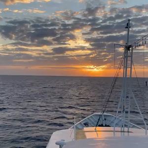 港を出港しておよそ30分過ぎ、船首の目の前に夕日が沈んでいきました。