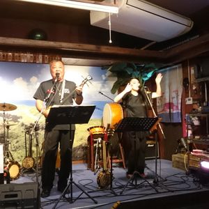 今回で訪問3回目ですが、初めてお弟子さんの演奏を聴きました。歌謡曲路線の古謝さんのステージも良いですが、より民謡色の強いお弟子さんの演奏、とても良かったです。何度もじっくりと聴きたくなります。