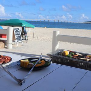 家族で利用させていただきました。追加料金で地元スーパーで食材とドリンクを持込しました(¥550/人)。量的にはお店側提供分でも充分かとは思いますが男性が多い場合には持込をお薦めします。子供がいたので一階でBBQさせてもらいました。食事に飽きた子供達が目の前にある砂浜で遊べたのでそれを見ながらゆっくりBBQを楽しめました。季節的なものかもしれませんが蠅が異常に多く、日が沈んだ後は蚊も増えました。蚊取り線香等が無かったのが残念でした。対策取られた方がもっと心地良く過ごせると思います。場所、スタッフのみなさんも良かったので宮古島行く際はまた利用させて頂きます。