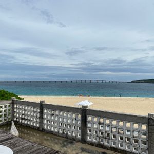 子供が寝ていたので1Fの日陰になる場所を選ばせてもらえて、とても涼しい場所で目の前の砂浜、海、来間大橋の絶景を楽しめました。2Fは日差しが強い分、景色はもっと良いそうです。