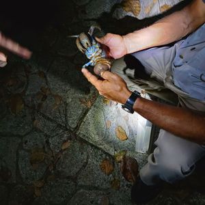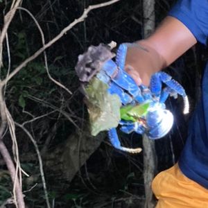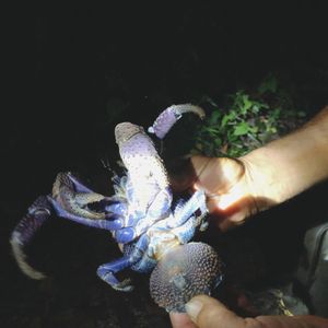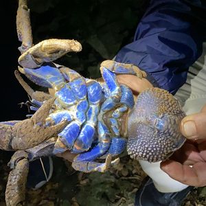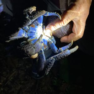 初めての宮古島で、ヤシガニツアーに娘と参加させて頂きました。お天気が良かったら星空も見れたのですが、あいにくの雨…(T-T)ヤシガニも見れなかったら最悪と思っていたのですが、同行していただいたウエチさんは、ためらいもなく雨の時程ヤシガニはいるんだよと話している側から、なんと数分で探してくれました!小さなヤシガニでしたが、何匹もここにいるよと岩の間やいつの間に捕まえて来たのか分からないくらい早業かつ丁寧につかみ方を教えてもらい記念の写真も取れました。もっと感動したのは、「電気を消してごらん、よーく周りをみて」と話ながら真っ暗な道を進んでいると、ぽわ~んと光が…なんとホタル。一年中いるそうです。その他にも紫色のカニやヤモリなど探す事が出来、とても楽しかったです。有り難うございました。