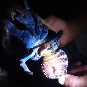 あいにくの天気で星空は見えませんでしたが、ヤシガニ数匹を見ることができました。