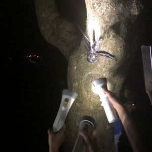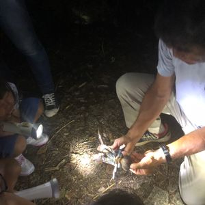 生憎の曇り空、真冬に逆戻りという寒い日でしたが、真っ暗な小山の中を進んで行くと、大小合わせて5匹のヤシガニに遭遇できました。ヤシガニを持たせていただいたり、お腹を観察したり貴重な体験ができました。星が観れなかった代わりに、と秘密の?砂浜に案内してくださり、娘が浅瀬を足でかき回すと海中にビカビカ蛍のような光が!夜光虫だそうです。見たのは初めてで感動しました。4月から社会人になる娘ですが、探検みたいなこのツアーが一番楽しかったそうです。良い思い出になりました。ありがとうございました。