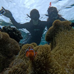 雨が降っていたので心配していましたが、無事にシュノーケルをすることができました。担当の森田さんが良いスポットに連れて行ってくださったおかげでウミガメやカクレクマノミなど間近で見ることが出来て、ニモの世界に入れたような気持ちになれました。