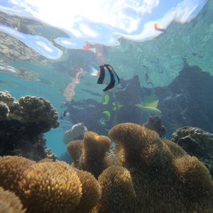 シュノーケリングはライフジャケットとフィンで楽にシュノーケリングを楽しめました。サンゴ礁にはたくさんの魚がいましたし、ウミガメにも遭遇することが出来て良かったです。