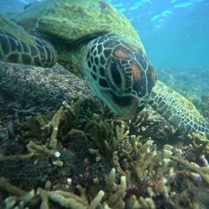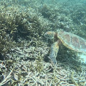 シュノーケリングではウミガメ2匹に出会うことができ、間近で海藻を食べたり息継ぎの様子が見れ、めちゃくちゃかわいくてとても癒されました!
