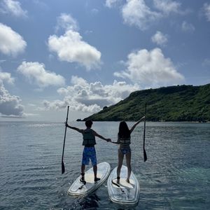 集合直後からインストラクターの方が気さくに声をかけていただき、楽な気持ちでアクティビティに臨むことができました!前半はインストラクターの方がつきっきりで教えてくれ、慣れたあたりでドローン撮影もしていただけます。ドローン以外にもインストラクターの方が写真をよく撮ってくれるので、自分で写真に気を使う必要はありませんでした。後半は波の穏やかな場所に向かい、自由行動になりました。水遊びをするもよし、魚がいる場所に向かうのもよし、SUPで寝るもよしで、穏やかな最高の時間でした。アクティビティ終了後にはドローン・携帯で撮影した動画・写真を編集してプレゼントしてくださりました。とてもクオリティの高い動画で、最高の思い出になりました!