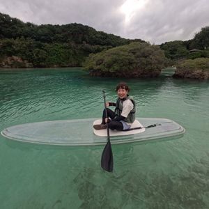 とても気さくなインストラクターさんが漕ぎ方を優しく教えて下さり、初めてでも楽しい時間を過ごすことができました。時々小雨も降り風の強い日でしたが、イムギャーマリンガーデンの波は穏やかで、海上からの景色も楽しめました。またクリアサップなので、立ったままで足元の海の中の景色も同時に楽しめて、とても良かったです。カクレクマノミもバッチリ見れました。ドローン撮影していただいた写真や動画には、イムギャーマリンガーデンの素晴らしい景色の中で楽しむ自分達の姿が写されていて感動しました。次はお天気の良い日に体験してみたいです。