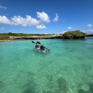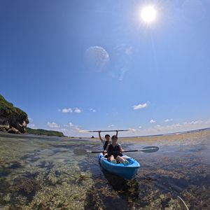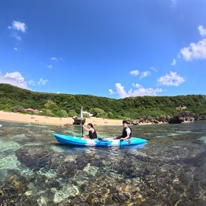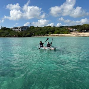 遠浅でおだやかな場所でのカヤック。クリアに水中が見通せるところがとても良かったです。