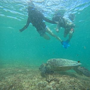 ・ウミガメシュノーケリングはもうウミガメとゼロ距離になるくらい間近で見ることができました!若いお兄さんが先導してくれましたが写真の画角も含めて工夫されててありがたかったです!