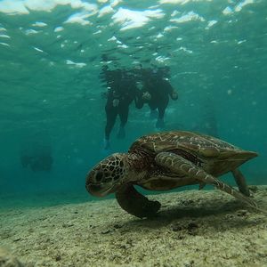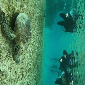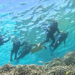 冬で天気もそれほど良くありませんでしたが、海の中はとても綺麗で、ウミガメやクマノミも近くで見ることができました!人懐こい魚もいてかわいかったです。シュノーケリングスポットはそれほど深くないので、初めての方でも安心して楽しめると思います。