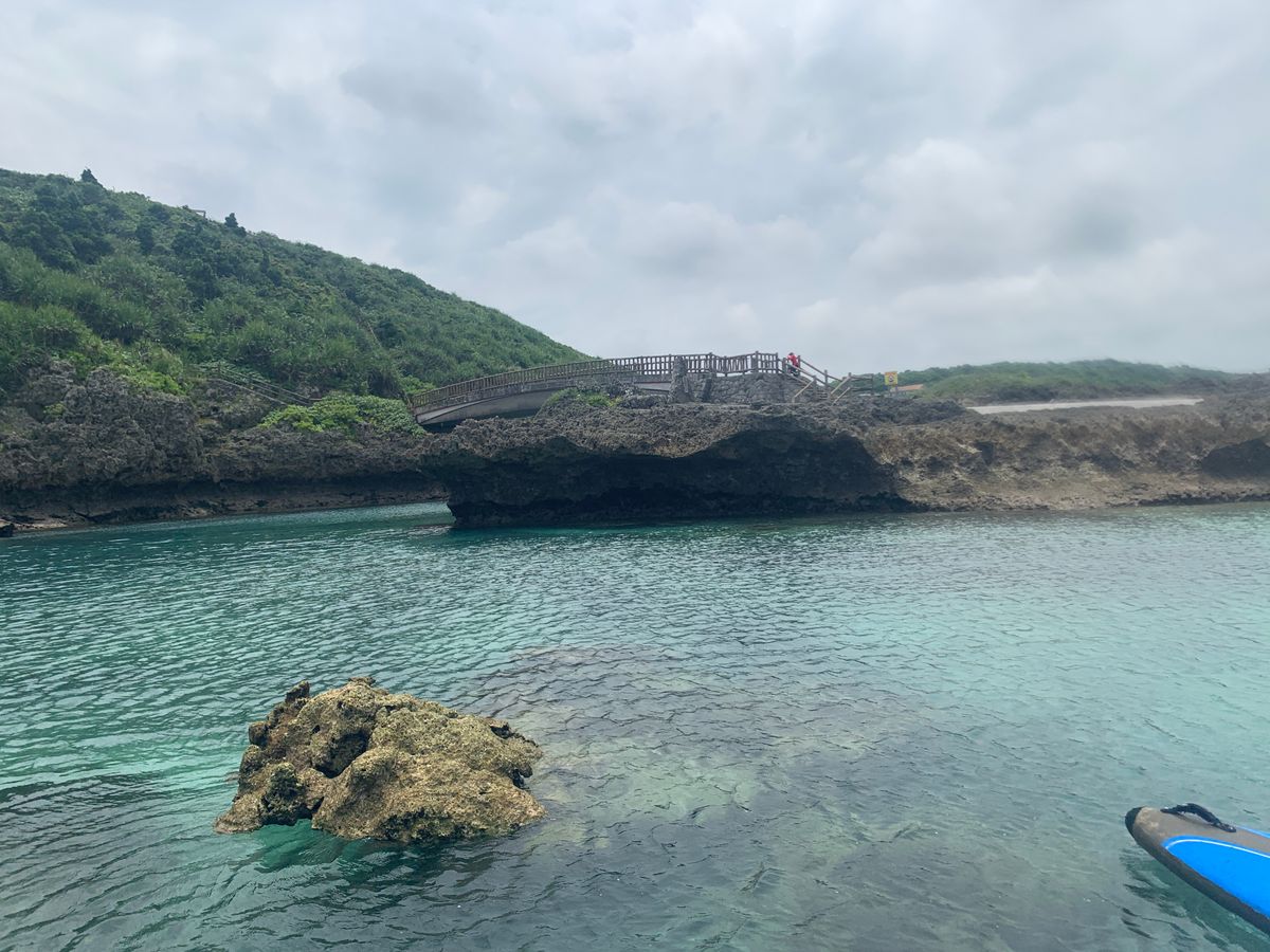 午後の部でしたが、大潮の関係で潮が引いた状態でのSUPとなり、行動範囲が狭くなってしまいました。午前にこの場所に散歩がてらきていて(ホテルが隣)、その時は満ち満ちで海の色が映えていたので、その状態を知っていたので余計残念でした。