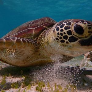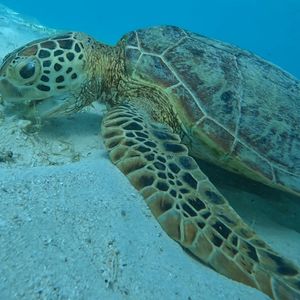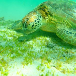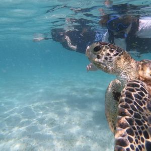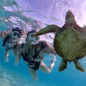 海亀シュノーケルとパンプキン鍾乳洞ツアーに参加しました。海の中に入ってすぐに海亀に会えて、全部で4匹も見られました。インストラクターのお姉さんいわくラッキーだとのこと。海藻を食べている様子が可愛かったです。一緒に写真も撮れて最高でした!