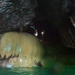 パンプキン鍾乳洞のツアーでは海の中からしか入れない鍾乳洞に二人乗りのカヤックで行く予定でしたが、台風の後ということもあり、干潮で水位がとても低く途中から徒歩で向かいました!パンプキン鍾乳洞に向かう途中に、台風や雨の後にしか見れない奇跡の滝があり、写真も撮ってもらえてとても良い思い出になりました。鍾乳洞の中は幻想的で、鍾乳洞を登ったり、飛び込んだり、自分でライトを照らしたりとここでしかできない体験ができました!シュノーケルでは残念ながらウミガメには出会えませんでしたが、カクレクマノミや珍しいフグなどにも会えてたくさん魚の名前も教えてもらいました!親切なガイドさんばかりで安全にツアーを楽しめると思います。珊瑚やシュノーケルの知識なども学べるので初めての方はツアーに参加することをお勧めします!