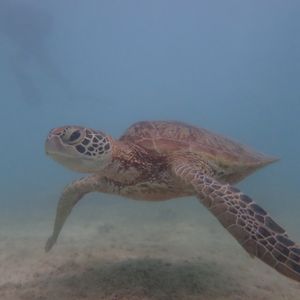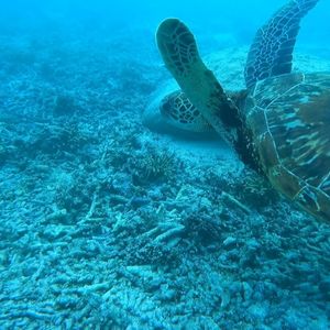 後半、ウミガメを探すことになったら、インストラクターの人がすぐに発見!!ウミガメはこちらを気にせず、海の中を散策していました!