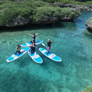 小学生の子供たちと体験しました。初めてなのでどうなるかなと心配していましたが、丁寧なご指導のおかげで、2人ともすぐに楽しめるようになりました。特に下の子は、インストラクターのお兄さんに牽引してもらったので、安心でした。きれいな魚もたくさんいたので、SUPだけでなく、お魚の鑑賞もいっぺんに楽しむことができました。景色が本当に素晴らしかったです。素敵な写真もたくさん撮っていただき、最高の思い出になりました!