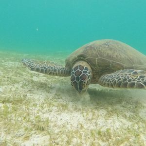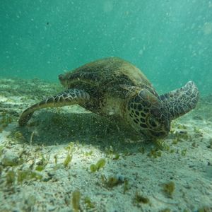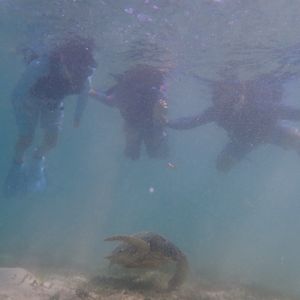 シュノーケルではウミガメが早い段階で発見でき間近で一緒に泳ぐ事ができました。目がとても可愛く、また息継ぎがかわいすぎです。雨の後で水が多少濁ってたかな?とは思いましたが、気持ちがよかったです。